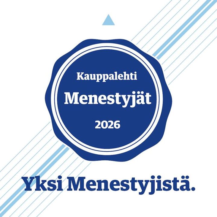 Kauppalehden menestyjämerkki mittaa laajasti, miten hyvin yritystä hoidetaan ja mikä on sen vakavaraisuus. Suomalaisista Osakeyhtiöistä sen saisi vain 9%. Kuulumme siis parhaaseen kymmenikköön.