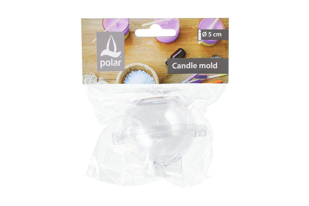 Muovista valmistettu läpinäkyvä muotti kestää monta valantaa ja pysyy hyvin paikallaan valamisen aikana. Kuumuuden kesto max. 120 astetta. Valmiin kynttilän koko 5 cm.