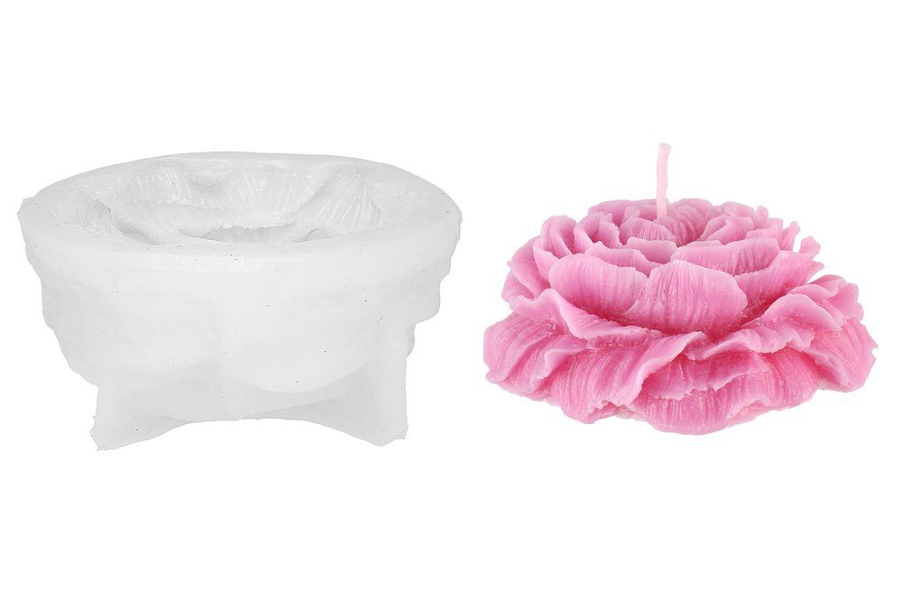 Silikonimuotti pionin muotoisen kynttilän valmistukseen. Silikonimuotti on helppo käyttää, valmis kynttilä irtoaa vaivatta ja muotti on helppo puhdistaa. Muottia voidaan käyttää myös mm. saippua- ja kipsivaluihin. Valmiin kynttilän koko 9,2×9,2×4,5 cm
